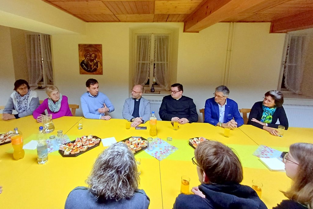 Nach dem Konzert trafen sich Generalvikar Dr. Christoph Weiss, Pfarrer Slavomír Dlugoš sowie Seminarist Thomas Heinrich mit den Pfarrgemeinderäten aus Kaumberg und Ramsau im Pfarrhof und ließen den Tag mit spannenden Gesprächen und gutem Essen ausklingen.