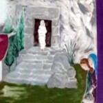 Im Vorraum der Pfarrkirche Kaumberg hängt von Aschermittwoch bis Karfreitag ein violettes Fastentuch. Die inzwischen verstorbene Frau Johanna Lintner (+02.01.2021) hat darauf sechs Ausschnitte aus bekannten Evangelien der Fastenzeit in schlichten Bildern malerisch dargestellt.