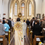 Eigentlich sollte ja die Einweihung des neuen Tabernakels am Sonntag, 15. 09.2024 vorgenommen und entsprechend gefeiert werden. Doch dann überzog genau an diesem Wochenende eine massive Starkregenfront unser Land, sodass ganz Niederösterreich zum Katastrophengebiet erklärt werden musste. Gott sei Dank blieben Kaumberg und das Triestingtal von Hochwasserschäden weitgehend verschont, dennoch war diese Tage an Feiern nicht zu denken. Eine Woche später sah die Welt wieder freundlicher aus. Am Sonntag, 22.09.2024 konnte nun der historische Akt im Rahmen einer Festmesse vollzogen werden. Pfarrer Slavomír Dlugoš stand die Freude ins Gesicht geschrieben, als er die