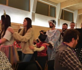 Zu einem fröhlichen Fest für jung und älter gestaltete sich der diesjährige Pfarrfasching am 17. Jänner. Mit einer lustigen Darstellung eröffneten die Minis das Fest, dann leitete DJ Wolfgang über zur Polonaise und brachte damit den ganzen Saal in Schwung.