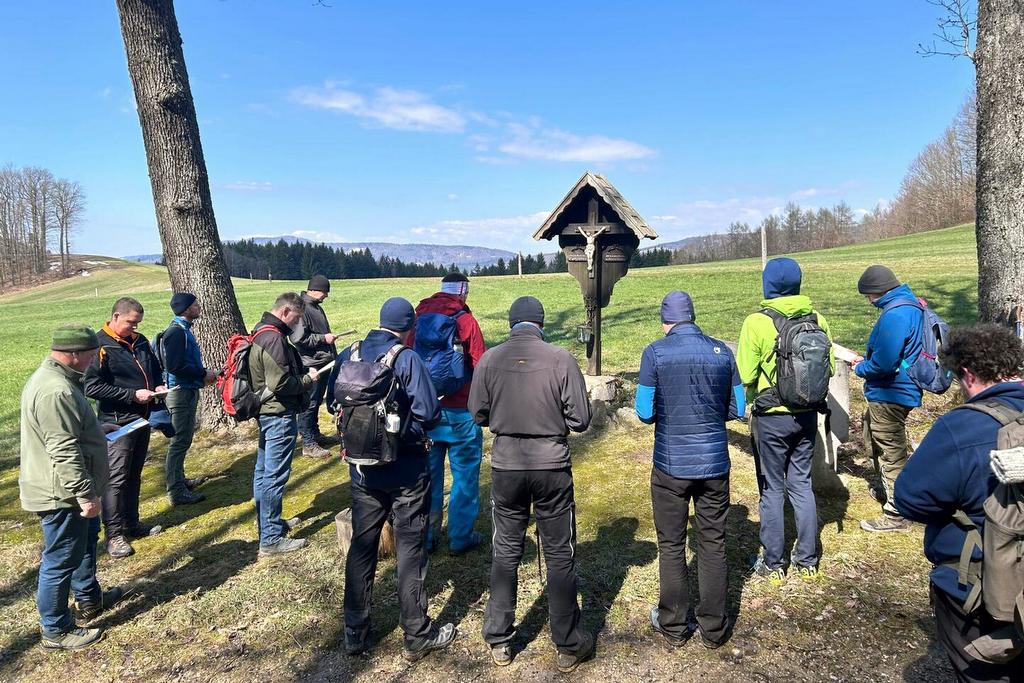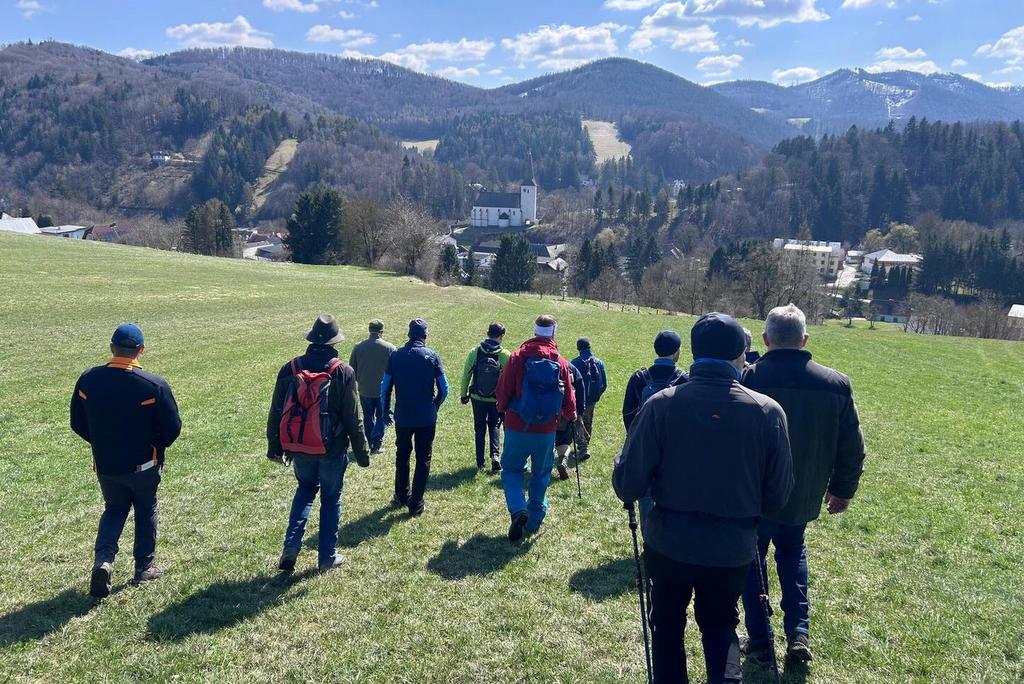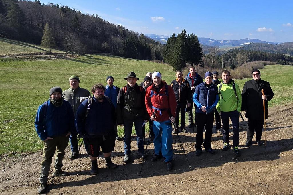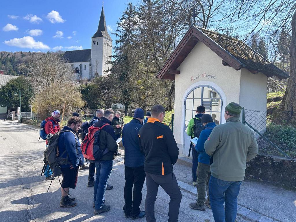 Bereits seit 2007 ist die Männerwallfahrt ein fixer Bestandteil der heiligen Woche vor dem Osterfest. Auch heuer begaben sich 15 Männer am Karfreitag auf den Kreuzweg von der Basilika Klein-Mariazell zur Pfarrkirche Kaumberg. Das Wetter meinte es sehr gut mit uns und voller Freude begleitete uns auch Pfarrer Slavomir Dlugoš und Seminarist Thomas Heinrich auf dieser Wallfahrt. Jedes Jahr stellt der Kreuzweg Christi viele Fragen und wir werden eingeladen, uns diesen zu stellen und Spuren zu finden „INRI“chtung Auferstehung, für uns persönlich und unseren Gemeinschaften. Ist es die Natur, der Weg, die Stille, die guten Gespräche, die Texte, die Achtsamkeit oder die bewusste Zeit mit Gott? Diese Wallfahrt bewegt und ist eine wertvolle gemeinsame Erfahrung „INRIchtung Auferstehung“! Ein besonderer Dank gilt der Familie Fischer/Apfler für ihre Gastfreundschaft und die stärkende und ausgezeichnete Fastensuppe! Bei unserer Pause hatten wir auch eine schöne Begegnung mit den Ratschenkindern. Wir erreichten rechtzeitig unser Ziel für die Karfreitagsandacht um 15:00 Uhr im Gedenken an die Sterbestunde von Jesus Christus.