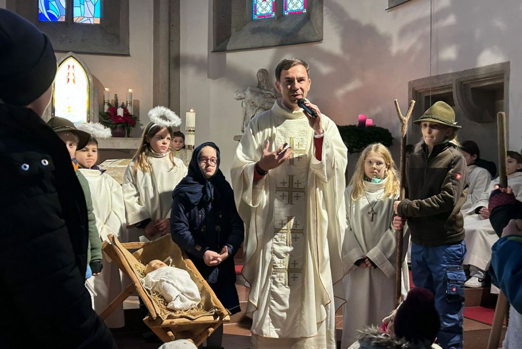 Zum Auftakt der Feierlichkeiten im weihnachtlichen Festkreis bot Pfarrer Slavomír Dlugoš am Nachmittag des Heiligen Abends eine Kindermette mit Krippenspiel für die Kleinsten.