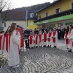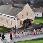 Bei bestem Frühlingswetter feiert Pfarrer Slavomír Dlugoš am 24. März 2024 die Palmsonntagszeremonien mit seiner Kaumberger Pfarrgemeinde wieder in gewohnter Weise. Als er mit der Ministrantenschar am Marktplatz einzieht, wartet die Menge der Gläubigen bereits auf die Palmweihe. Danach wandeln alle unter fröhlichem Gesang in Prozession hinauf zur Pfarrkirche.