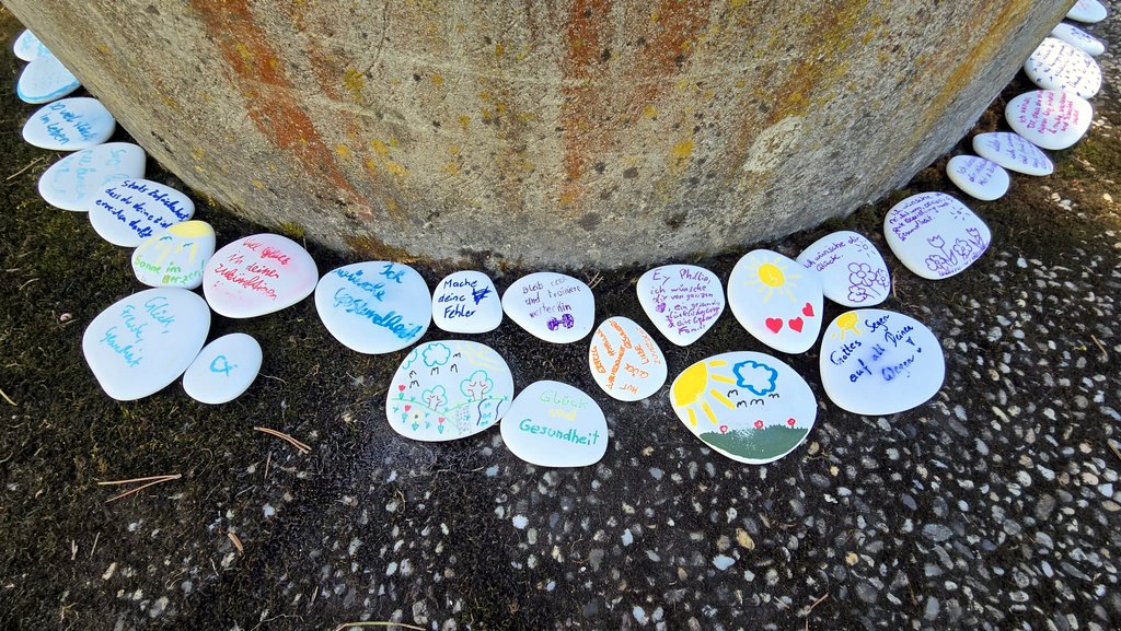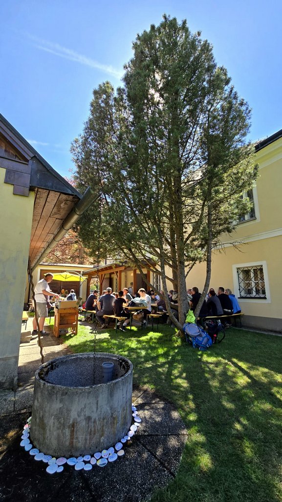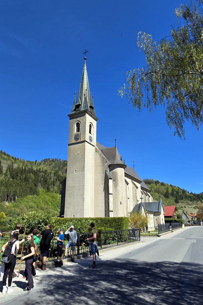 Entlang auf der Via Sacra Richtung Hainfeld genossen wir unsere wunderschöne Heimat,bevor es bergab in die Ramsau ging. An unserem Ziel, der Pfarrkirche Ramsau, hielten wir noch eine kurze Andacht ab. Im traumhaften Pfarrgarten vollendeten wir beim Brunnen unseren Stein-Impuls, wo im persönlichen Rahmen, die bemalten Steine mit Wünschen für Firmlinge, Paten bzw. Begleitpersonen abgelegt wurden.