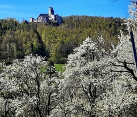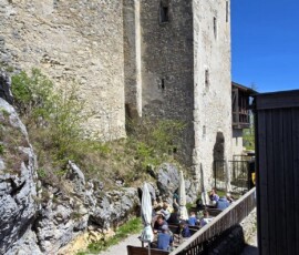 Mit unseren gemeinsamen Pilgerbändern ging es hinauf zur Araburg, wo wir unsere Mittagspause hielten. Am Weg wurden auch Schweigephasen abgehalten, um bewusst die Natur, das Gehen, den Atem und die Umgebung wahrzunehmen.