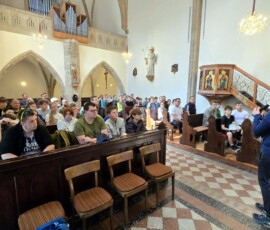 Insgesamt folgten über 60 Personen der Einladung und wir starteten mit einer sehr schön gestalteten heiligen Messe in der Pfarrkirche Kaumberg unter Leitung unseres Pfarrers Slavomir und unseres Seminaristen Thomas diesen Tag. Nach einer kurzen Einführung durch Wolfgang Jelinek, unseren heutigen Pilgerbegleiter, spendete uns Pfarrer Slavomír den Pilgersegen. Unser Pfarrer Slavomír begleitete ebenfalls die Wallfahrt und lud zu Beichtgesprächen am Weg ein. Ein großer Dank ergeht auch an die erfahrenen Wanderer Holzapfel Irene und Hans, die bei dieser großen Gruppe das „Schlusslicht“ bildeten, damit niemand zurückblieb.