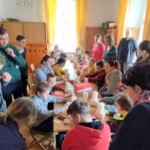 Die Mütter und Väter nehmen auch an den Workshops teil, bei denen die Erstkommunikanten typische Symbole aus der christlichen Tradition erarbeiten. Vor der Karwoche bastelten sie bunte Palmbuschen, welche die Kleinen dann in der Liturgie am Palmsonntag stolz präsentierten. Es gab einen Nachmittag zum Kerzen gestalten und ein anderes Mal wurden Kreuze gebastelt. Diese werden beim Erstkommunionsfest als einfacher Schmuck zur Kutte getragen.