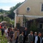 Der ganze Ort ist blitzblank geputzt, frisch geschnittene Birken säumen die Straßen, in den Fenstern stehen Blumen. An vier Stellen haben Familien liebevoll Altäre aufgebaut, beim alten Marktbrunnen, vor der Bäckerei Singraber, in der St. Michaels-Kapelle und beim großen Torbogen der ehemalige Gastwirtschaft Deimbacher. Der Umgang beginnt heuer recht früh gleich im Markt, dennoch könnte man meinen, ganz Kaumberg ist auf den Beinen, Vereine, Institutionen, jung und alt. Sogar die frisch gebackenen jungen Eltern eilen mit ihren Säuglingen herbei, um ihre Kinder dem Segen Gottes an zu empfehlen.